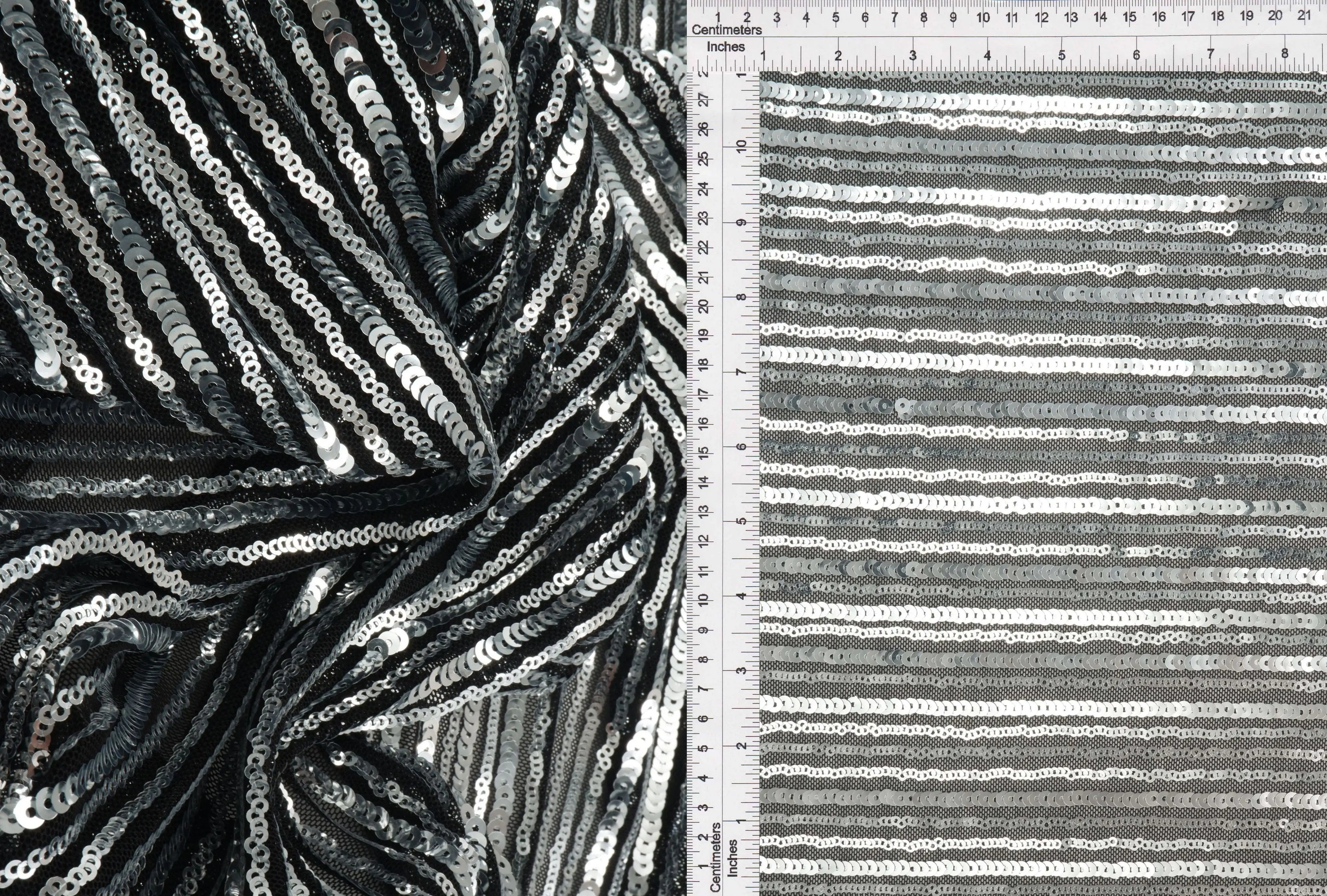 Black & Silver Sequin Embroidered Lace Knit Fabric - KNC-33544