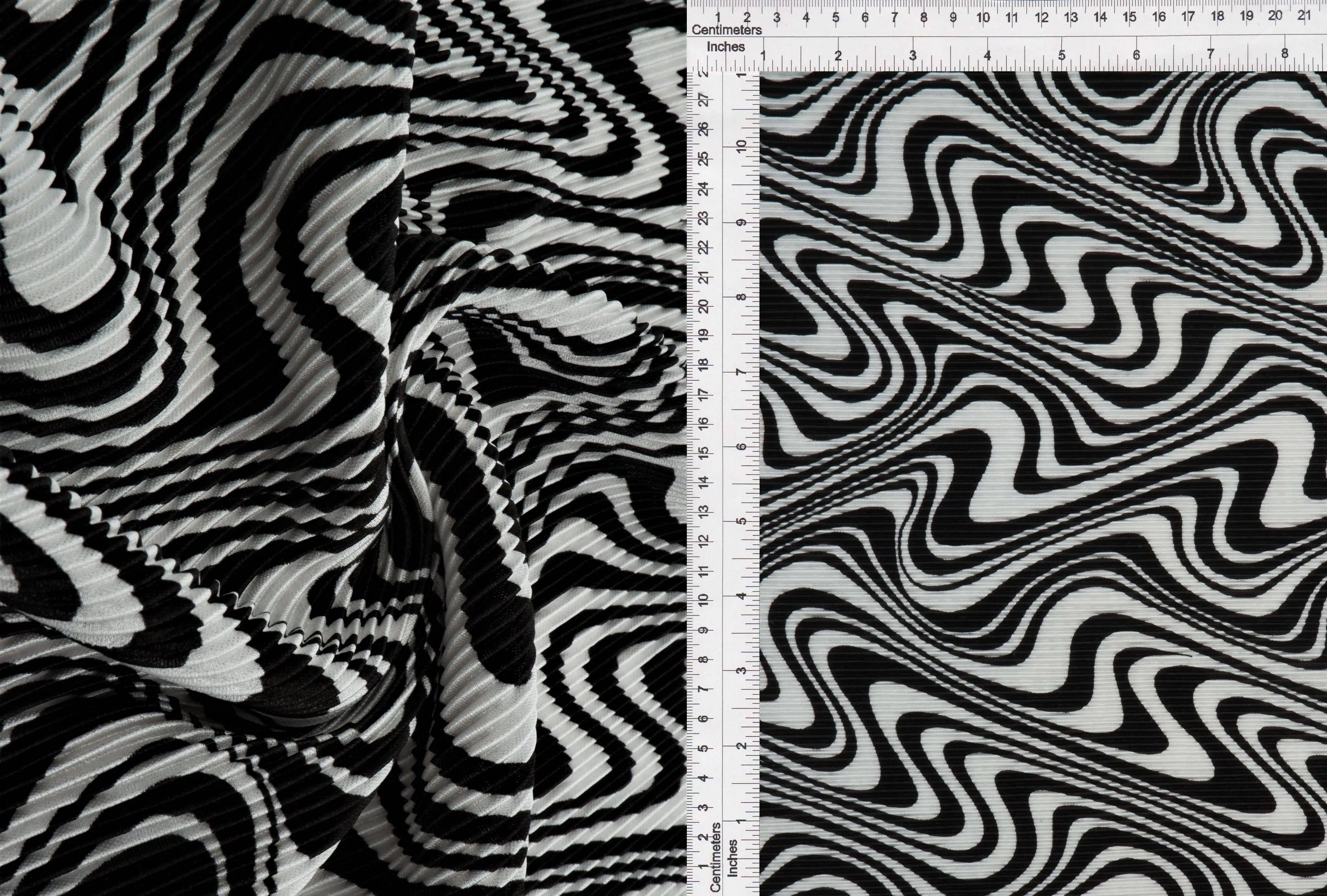 Pleated Abstract Geometric Bodre Interlock Fabric - KNT3696-Q20611B